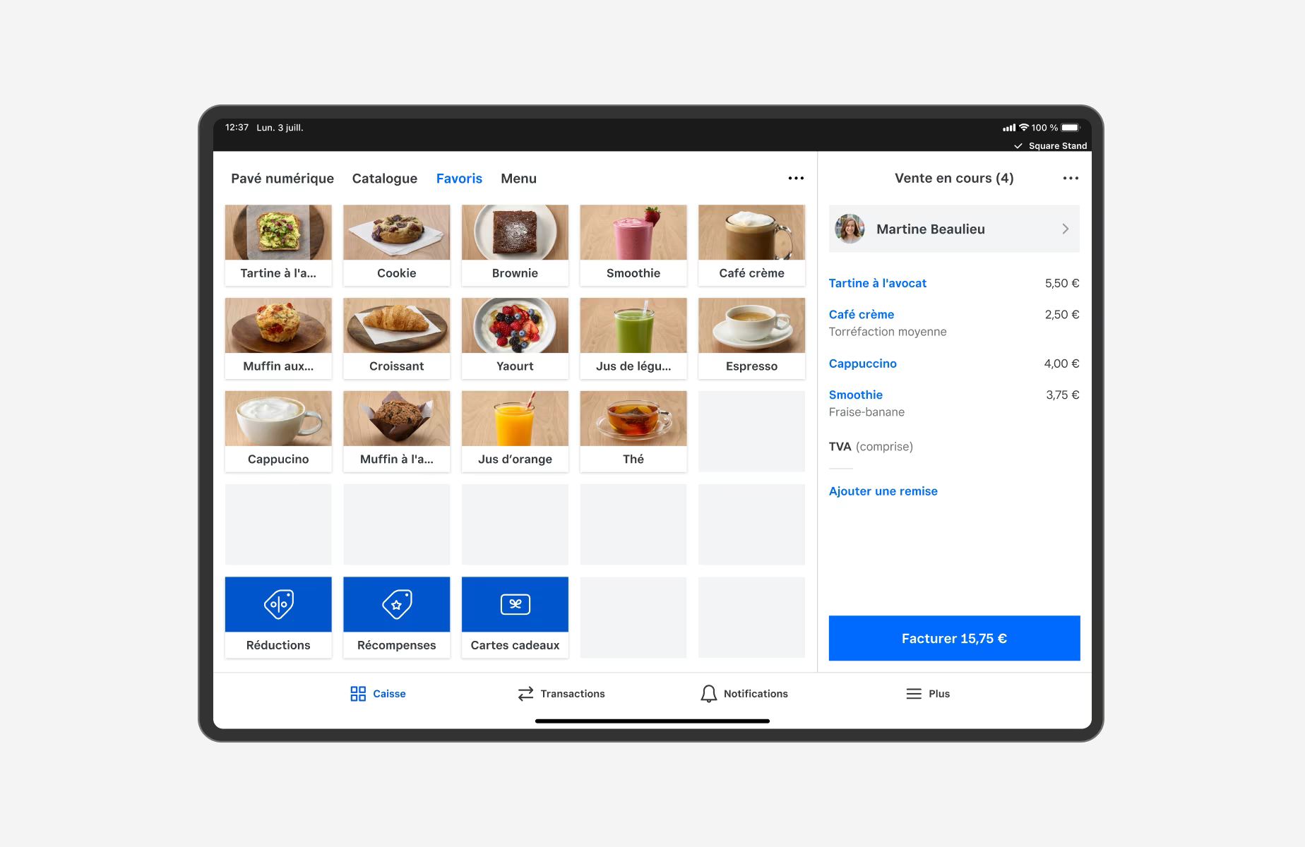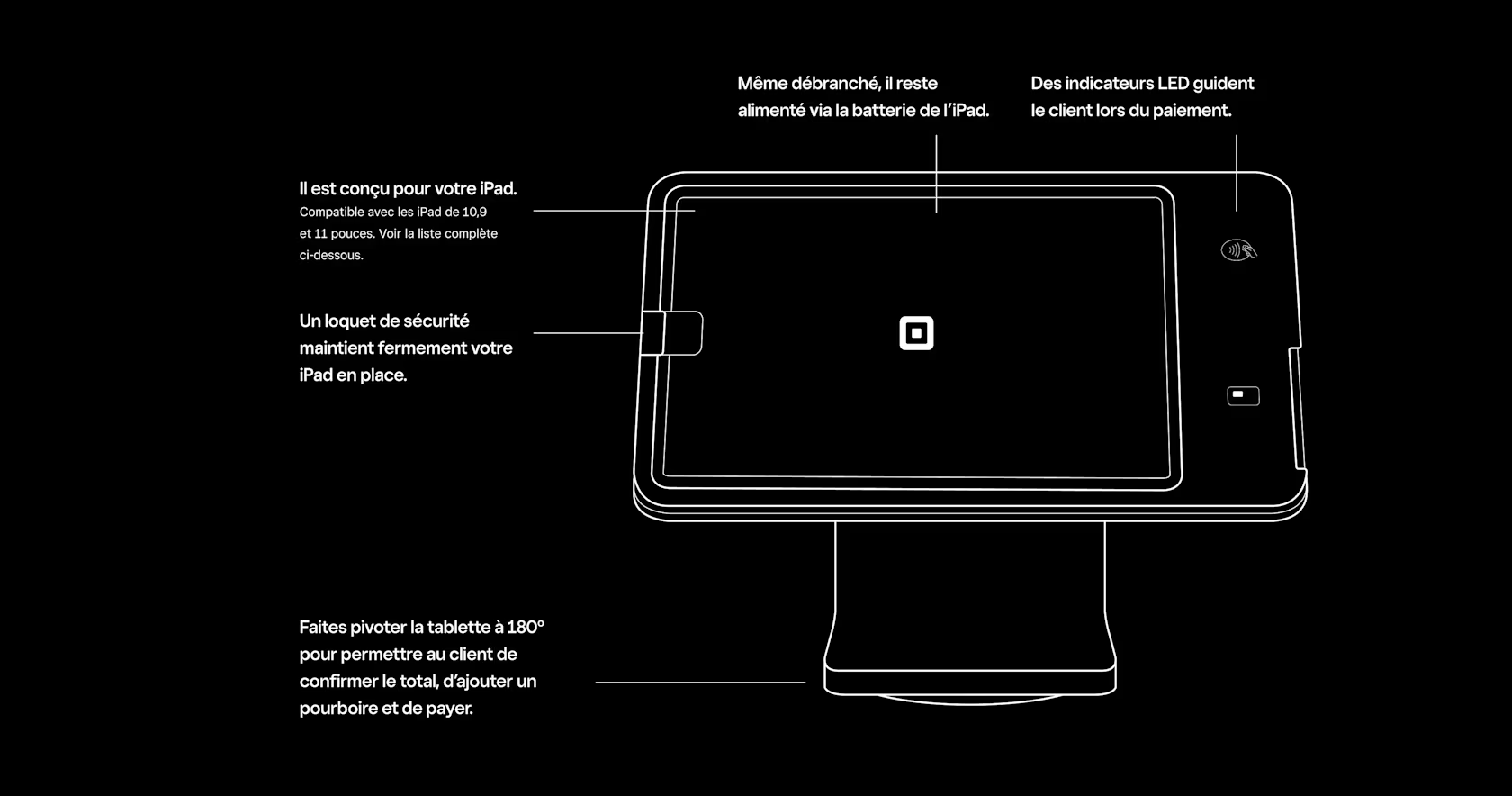 Des logiciels gratuits et puissants pour gérer n’importe quelle entreprise Square Kiosk Square Stand peut également être utilisé en tant que borne de commande en libre-service |